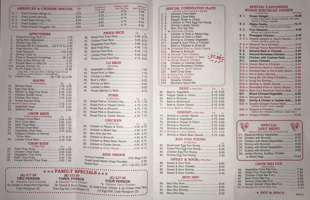 The menu features favorites such as the extra spicy General Tso, praised by locals, and the beloved Crab Rangoons, making it a go-to spot for Chinese takeout. Customers appreciate the reasonable prices for large portions, particularly the full chicken wings and satisfying fried rice.